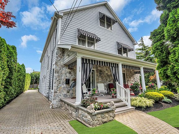 Move-in condition with a spacious open fl plan. The 1st level features lg living and dining rms, a powder rm, a family rm which is open to a custom kitchen providing the perfect space for lg gatherings. Both the family rm & kitchen have sliding doors accessing an expansive covered deck & the private rear grounds. The 2nd level includes 2 bedrooms, an office/bedroom, 2 full baths & a laundry rm. The 3rd level has 2 spacious & bright bedrooms & 2 full baths. Other features incl a gas fireplace, hardwood floors throughout, a marble entry, designer tile baths custom paint & 2 zone hvac. The exterior features incl a spacious covered front porch, paver driveway & walks, a bch shower & beautifully designed lush landscape. 2 short blks to Spring Lake's pristine bchs & salt water pool & pavillion.