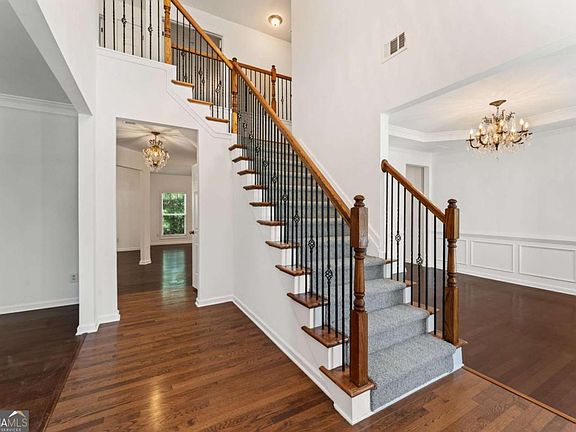 Largest floor plan home in sought-after Crestmont on a cul-de-sac lot with a rare 3-car garage and unfinished basement! The main level offers multiple living spaces including a formal dining room, flex room/office, living room, and a huge family room that opens to the eat-in kitchen. Custom painted kitchen cabinets, hardwood floors and upgraded lighting enhance the home throughout, dual staircases lead to the upper floor. Upstairs you'll find 4 bedrooms, including an oversized owner's suite with spa-like bath and a large secondary bedroom that can double as a bonus room. Fresh interior paint, two brand-new HVAC systems, and a newer water heater provide peace of mind. Enjoy Crestmont's low annual HOA fee and resort-style amenities: pool, clubhouse, playground, and tennis courts. Conveniently located near I-575, Northside Cherokee Hospital, the Cherokee Aquatic Center & Waterpark, Bridgemill Golf & Country Club, plus shopping, dining, and top-rated schools.