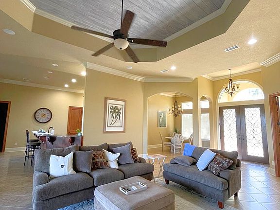 Marsh viewsSpacious primary suiteDedicated officePrep island with sinkStainless steel appliancesMediterranean-style homeGranite countertops