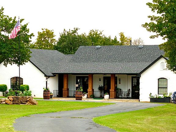 RARE LUXURY HORSE RANCH on 13 acres mol in Blanchard OK-Your private Equestrian Paradise! Welcome to your own little slice of private horse country heaven! This is a one-of-a-kind estate offering the perfect blend of luxurious living, outdoor amenities, and rural tranquility. The Main home is 3,292 sf of luxury living! Drive through the front gate and see the stunning white farmhouse with a charming front porch perfect for relaxing and watching amazing Oklahoma sunsets! The inviting interior boasts large windows, custom wood beams, a remodeled fireplace, and fresh paint. As you walk in, you will notice the large windows and expansive view of the patio, pool, pond and land. Open concept living, dining and kitchen make this home an entertainer’s dream! Split plan offers a huge primary suite with sitting area and Bath w soaking tub, walk in shower and spacious closet. The kitchen is a chef’s dream with a commercial stove and spacious island for prepping and serving! Walk out to the covered patio swings by the heated pool or the outdoor kitchen. Take a short stroll to the stocked pond and catch your dinner!