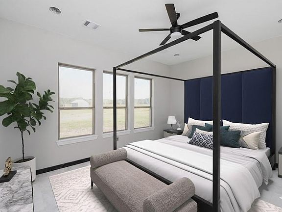Welcome home to this beautifully crafted new construction by High Hills Custom Homes, where Texas comfort meets timeless style. This brick one-story offers three spacious bedrooms, a private study, and 2.5 baths designed for easy living. The heart of the home is the oversized kitchen with quartz countertops, stainless steel appliances, and plenty of cabinets—perfect for Sunday suppers and entertaining friends. It opens seamlessly to a large dining area and an inviting family room with a cozy fireplace, custom built-ins, and a wall of windows that fill the space with natural light. Soaring 10–11 foot ceilings, 8-foot doors, and recessed lighting add an airy, welcoming feel. Unwind in the serene primary suite featuring double vanities, a relaxing jetted tub, separate shower, and a generous walk-in closet. This is Texas living done right.