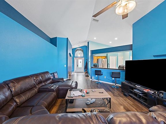 Welcome to this spacious 4-bedroom, 3-bathroom waterfront home in the desirable Bahia Lakes community of Ruskin! This residence offers a split-bedroom floor plan, ideal for both privacy and functionality. You'll love the vaulted ceilings, open concept living and dining spaces, and beautiful wood-look vinyl plank flooring throughout the main living areas. The kitchen features granite countertops, a breakfast bar, and stainless steel appliances, perfect for entertaining or family meals. Enjoy serene pond views from your screened-in back patio, offering a peaceful outdoor retreat with no rear neighbors. The large primary suite includes an ensuite bath with dual sinks, a soaking tub, walk-in shower, and ample closet space. Additional highlights include a two-car garage, indoor laundry room, HVAC (2019), Roof (2018) and new water heater (2022). The Bahia Lakes community offers resort-style amenities, including a pool, walking trails, fitness stations, and playgrounds—all with low HOA fees! Conveniently located just minutes from EG Simmons Park, Apollo Beach Nature Preserve, shopping, dining, and easy access to I-75 for quick commutes to Tampa, St. Pete, or Sarasota. This is Florida living at its best—don’t miss your chance to call this waterfront gem your new home!