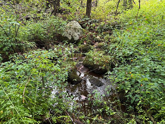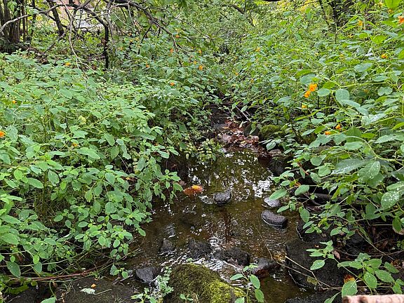 Stone wallPrivate oasisLightly wooded parcelEnchanting natural featuresBabbling brookPrivacy meets natural beauty