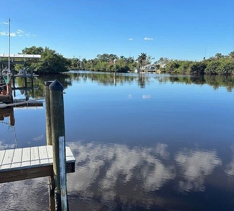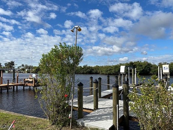 This waterfront lot has Spectacular views and sunsets, also boats and manatees are abundant. The property is in a 55+ waterfront community of Orange Harbor Co-op, situated on the Orange and Caloosahatchee Rivers. It will make a beautiful spot to build the home of your dreams! Also comes with a boat lift rated at 7,000 lbs. Deck has been treated with clear water protection coating before Ian. Price includes share for lot and ownership in the co-op with a low monthly maintenance fee of $407, which includes private streets, professional management, water, sewer, trash pick-up, lawn mowing, fiber optic internet and all amities of the community including heated pool, pickle ball, bocce ball, shuffleboard and many clubs and activities clubhouse and two boat ramps. Two pets total per household are welcome. Some dog breeds are prohibited so be sure to review the community rules. ESA or service animals are allowed. All buyers must be approved by management.