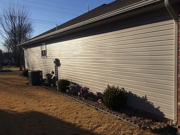 This sparkling clean 3bed/2bath home has fresh paint throughout & features a superb layout! A large living room w/gas-log fireplace is perfect for cozy gatherings. The well-designed kitchen has rich, wood cabinetry, granite counters, an eat-at bar, breakfast nook, double sink, & includes all appliances. An expansive, covered back deck has no-maintenance decking & offers a perfect spot for morning coffee or casual gatherings. The spacious master suite has attached bath, dual vanities with solid-surface counters and two closets w/wood shelf organizers. Two other bedrooms are roomy and have walk-in closets with built-in shelving. Laundry room has storage cabinets & built-in ironing board. Two-car attached garage with insulated door. Situated in a pleasant, Webb City neighborhood,