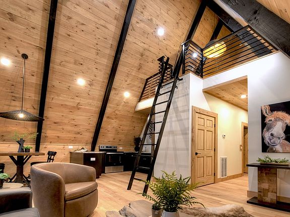 Newly constructed A-frame cabin with Fightingtown Creek deeded access! Soaring vaulted ceilings accented with custom beams and tongue and groove along with an expansive wall of windows letting in an abundance of natural light showcasing the open concept design and wood floors throughout. Kitchen fully equipped with brand new stainless steel appliances, custom cabinets and quartz countertops. Relax on the expansive back deck or enjoy this gentle sloping low maintenance lot. Whether you are searching for the perfect getaway or a high-demand short-term rental property, this cabin offers it all!