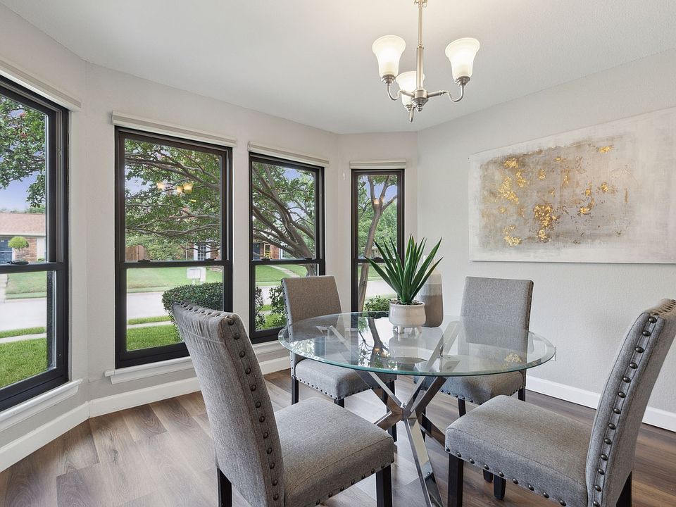 Perfect starter home or home for grandparents who want to be close to the grandchildren. MOVE IN READY, approximately 1 mile from elementary and middle school in highly ranked Coppell ISD. FOUNDATION & PLUMBING REPAIRS COMPLETED 9-24 & 10-4, WITH TRANSFERABLE WARRANTY. ALL APPLIANCES CONVEY, INCLUDING WASHER & DRYER. LVP flooring throughout. Roof replaced in 2018. HVAC and ALL DUCTWORK replaced in 2020. A UV light was also added to the system at that time. HW Heater replaced in 2021. New windows in front of house and in breakfast nook area in 2023. Fence owned by seller replaced 2023. Living Room has vaulted ceiling & wood burning fireplace. Spacious primary suite with ensuite bath and exterior door to access covered patio. Garage door insulation added in 2024. New garage door opener in 2021. Exterior electric plugs and home surge protector added. Extra storage in back yard shed that conveys. Survey available, which could be $600 savings for buyer.