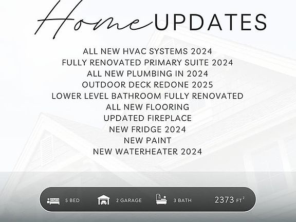 Step inside to find a fresh, modern aesthetic with all-new flooring, paint, light fixtures, and hardware throughout. The upper level is dedicated to luxurious living, featuring the private Primary Suite, a true owner's retreat with vaulted ceilings, a spa-like bath with a double vanity and separate vessel soaking tub and shower, and a spacious walk-in closet. The lower level offers two generous additional bedrooms and a full bath, providing an ideal layout for guests or a home office setup. Outdoor entertaining is a breeze with an updated deck overlooking the fully fenced backyard-perfect for summer cookouts. Plus, enjoy peace of mind with two brand-new HVAC units just installed! The oversized garage and storage shed offer plenty of room for all your tools and toys. This isn't just a house; it's a completely refreshed home waiting for its first new memories.