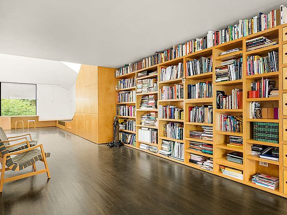 The layout is exceptionally versatile, with potential for multiple bedrooms, dedicated offices, and studio/flex spaces that can easily adapt to your lifestyle. Whether you need a live/work setup, a private gallery, or room to grow, this home provides the space and scale to accommodate it all. Every detail has been curated with both design and function in mind, from the concrete kitchen to white porcelain mosaic-tiled bathrooms, to custom storage and gallery-ready walls. Above the great room is a book-lined bedroom retreat, and the third floor features a dramatic mezzanine level framed with skylights – the perfect library, study, or additional creative zone. Up the sculptural stair is the fourth floor office, creative space or bedroom and sky-lit bathroom. Modern systems include central air conditioning and radiant heated floors.