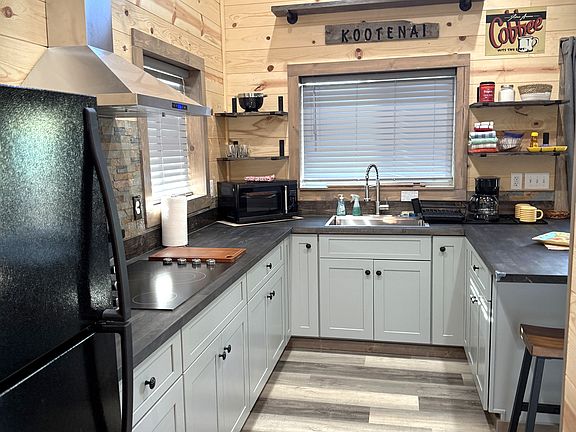Enjoy comfort, convenience, and stunning Schweitzer Mountain Ski Resort views from this new fully furnished mid-term rental, perfect for traveling professionals, remote workers, and snow birds. Rustic modern finishes with an abundance of natural light and all the essentials. Storage and pantry. 1 bedroom with queen bed. Murphy queen bed in living room. Large deck to enjoy dining out, room for yoga or exercise. Private fenced yard with hot tub and BBQ on the patio. Washer/dryer in unit for your convenience. Keep cool with air conditioning unit. Safe neighborhood. Walk and bike to services.