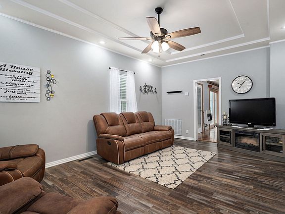 Charming Home with Detached Shop in HurleyLocated halfway between Springfield and Branson, this updated home offers both comfort and functionality. Recent updates include new vinyl plank flooring in the living room and main bedroom, along with a new HVAC unit installed in 2025.The oversized kitchen/dining area features hardwood floors and a pantry. The main level includes a walk-in shower, while upstairs you'll find a spacious bedroom measuring 27x11.8.Outside, enjoy a covered front porch, landscaped 1/2 acre yard, and a scenic backyard view overlooking a wet-weather creek and bluff. The detached 26x30 shop is insulated, wired with electric, and includes a lean-to on the back for additional storage or workspace.Note: Wall unit heater are for backup heat only. Main floor has central heat and air.