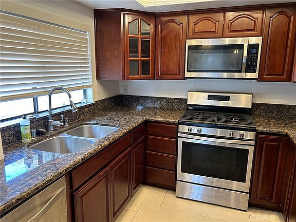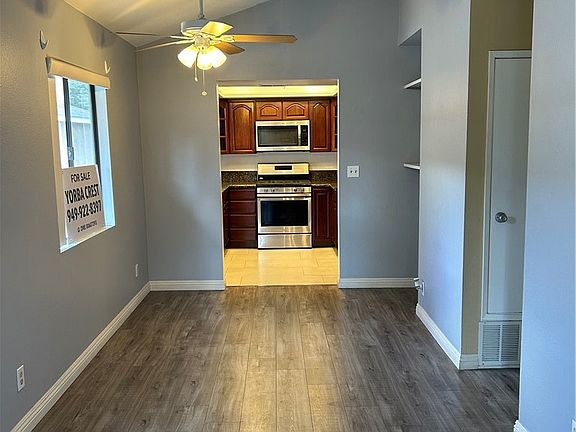 GORGEOUS CONDO ON THE SECOND FLOOR SITTING OVER THE TWO CAR GARAGE. THE LIVING ROOM FEATURES A FIREPLACE WITH SURROUNDING WINDOWS FOR A GREAT VIEW. THE KITCHEN IS UPDATED WITH DARK WOOD CABINETS AND STAINLESS STEEL APPLIANCES. THE STACKED WASHER/ DRYER ARE INCLUDED WITH THE UNIT AND LOCATED IN THE HALLWAY THAT LEADS TO THE LARGE TWO BEDROOMS. CEILING FANS THROUGHOUT, UPDATED VINYL FLOORING! NEAR CAL STATE FULLERTON, SAINT JUDES HOSPITAL AND MORE!