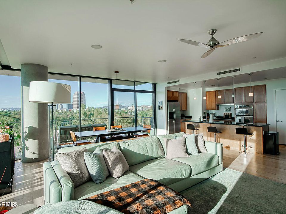 UNICORN ALERT! If you need a swanky pad, welcome home! Portland Place is the place to be with views of the Japanese Friendship Garden, Hance Park, walking distance to restaurants, coffee shops and more. Enjoy all the building has to offer with a roof top pool with amazing sunset, downtown and historic neighborhood views. There is also a gym and underground parking with electric charging available. The unit is a stunner, 2 bedroom, 2 full bath with a wrap around balcony framed in floor to ceiling glass. You will be in awe the moment you walk in! Fantastic views overlooking the gardens, with a tree line view. It is one of the best corners of the building for privacy and views! Open island kitchen with a huge living space perfect for entertaining. This one is special, come see why!