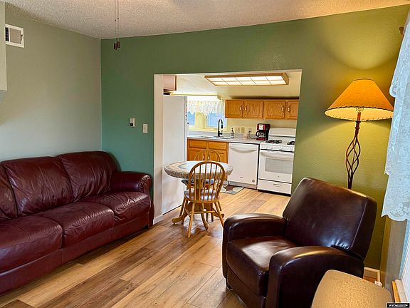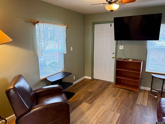 Fall in love with this charming one-bedroom, one-bathroom home that makes the most of its 624 square feet with thoughtful updates and cozy character throughout in Saratoga, Wyoming. The home features waterproof LVP flooring and on-demand hot water. Outside, the property really shines. The huge yard is fully enclosed with a wooden fence, offering tons of space for pets, gardening, entertaining, or simply enjoying the outdoors. You'll also love the two separate detached sheds that are heated and have both recently been updated with new windows and flooring. They're perfect for a home office, hobby space or storage! This property is a unique find so don't wait to schedule your showing!