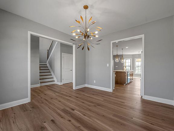 The Jackson II is a spacious four bedroom home with a downstairs office/study, which can also be configured as a guest suite. The two-story foyer has a railed overlook above and encompasses a stairway with a feature window over the landing. The family room and breakfast overlook the rear yard, and the centrally located kitchen is open to all main living areas of the home, for good traffic flow and entertaining. A large pass-through utility room/mudroom is on the first floor and accesses a back hallway convenient to the powder room and kitchen. The office or study is located off this hallway, creating a nice combination of privacy and accessibility. When the optional guest suite replaces the office/study, a drop zone is also available leading from the garage to house. Nine-foot ceilings throughout the first floor are included. The upstairs primary bedroom suite features a large bedroom with a trey ceiling, and a luxury bath with his-and-her vanities, linen closet, enclosed commode, garden tub, and separate shower, adjacent to a roomy closet. Three additional bedrooms, one with a large walk-in closet, share a hall bath. Exterior plan details include a front porch, board and batten siding accents, and true radius head windows.