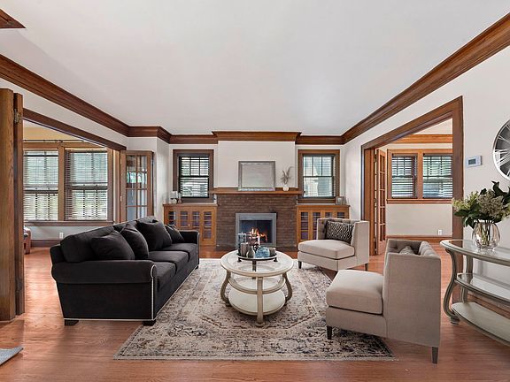 Lovely updated Brick American 4-Square. Sought after open layout with stunning refinished hardwood flooring, and much original woodwork throughout. The spacious living room is anchored by the brick front fireplace which is flanked by the original built-ins. Bright and sunny Den with splendid French doors. Formal dining room perfect for entertaining. Beautiful kitchen with shaker cabinets, trendy farm sink, granite counters ,stainless appliances and popular ceramic plank flooring. Pretty mud room. The second floor features four bedrooms and a full bath with subway tile surround and pedestal sink. Stairs to the bonus attic space. The lower level offers a family room, office and a stunning full bathroom with ceramic plank flooring and walk-in shower. Fully fenced backyard. Professionally landscaped. Located on a quiet dead-end street. Don't miss it!