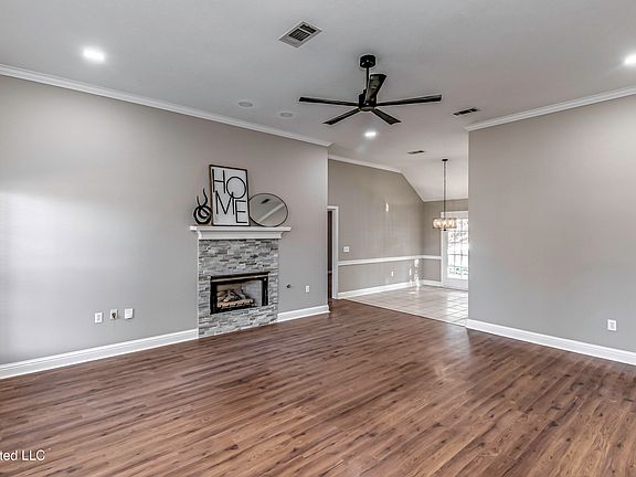 This beautifully updated gem, tucked away on a cul-de-sac in Laurelwood, is move in ready and has it all! The curb appeal invites you inside to find finishes that include rich, laminate flooring in the living areas, granite in the kitchen and baths. Fresh paint throughout! You will also find updated lighting. The focal point of the living room is the lovely stacks-stone fireplace. You won't mind cooking in this lovely kitchen, complete with stainless steel appliances, counter space galore and brand new subway tile backsplash. Double French doors that lead to the back yard that has the most beautiful waterfront lake views. The relaxing master bedroom has a double tray ceiling. There is a spacious master bath with double vanities, separate tub and shower. This home sits nicely in a quiet cul-de-sac and boasts a large, shady, fenced yard with a double gate and side entry garage. One of the best features of this home is the location. Right outside the neighborhood is Dogwood Festival Market and just a few minutes down the road is all of the fun the Ross Barnett Reservoir has to offer.