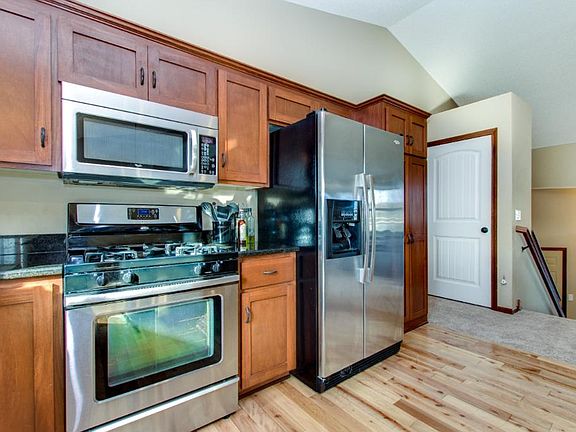 Open concept flr plan, trendy colors, vaulted ceilings, large kitchen w/ hardwood flrs, granite countertops, center island and SS appliances. This fully finished 4 bed (3 on one lvl) 3 bath home has private owners bath & W/I closet. Home also offers zoned heating - 2 zones; upstairs & downstairs. Finished LL has a large family room that walks out to fenced backyard. Brand new carpet just installed on the upper level. This neighborhood is known for it's close-knit community feel. Don't wait!