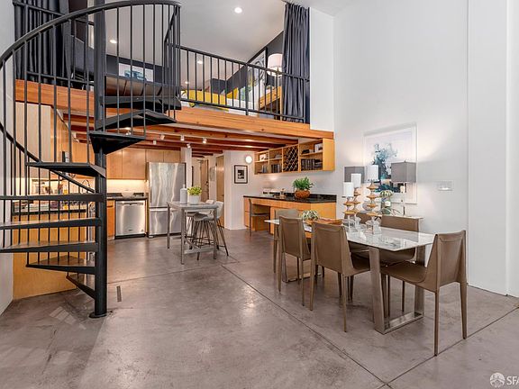 At the crossroads of three dynamic neighborhoods - Dogpatch, Mission Bay, and Potrero Hill - this spacious live/work loft delivers the best of modern city living. Quietly positioned on the serene rear side of the building, it blends urban energy with comfort, privacy, and style. The entry level welcomes you with a convenient hallway closet or pantry, stacked washer/dryer, and spacious half bath, opening into a sleek kitchen outfitted with newer stainless steel appliances. The expansive great room showcases soaring ceilings and an open, light filled layout - the quintessential loft experience! Step outside to your private patio, complete with wooden shelving, ready for a home garden, living wall, or other creative endeavor. Up the spiral staircase, the loft level features generous closet space and a full bath, creating a functional and inviting retreat. One deeded parking space is included in the secure garage. Enjoy unmatched access to the best of the city: Caltrain/T-Line, Chase Center, Crane Cove Park, Esprit and Mariposa Parks, a state-of-the-art fitness studio on Pennsylvania, and a vibrant mix of dining and entertainment along the 3rd Street corridor. Buyer advised to test car in parking spot. Urban convenience meets inspired living placing you right at the center of it all!