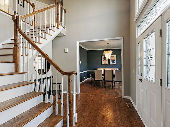 Tucked away on a quiet cul-de-sac in the highly desired Eagle Brook subdivision, this spacious home combines elegance, comfort, and unbeatable views. Set on a private lot overlooking the 17th hole of Eagle Brook Golf Course, the home features a massive deck-perfect for outdoor entertaining and relaxing. Inside, enjoy an open layout with a double staircase and a spacious family room that includes a new Frame Art TV-designed to display artwork or your family portrait when not in use. The beautiful family room flows effortlessly into the updated kitchen featuring stainless steel appliances, ample counter/cabinet space and a large island. Newly refinished hardwood floors enhance the main level, which also includes a private home office. The finished basement adds even more space with a rec area, bonus room, and bar/kitchen area-ideal for entertaining. Golf course living at its finest-just minutes from Geneva's shopping, dining, and top-rated schools! Updates...2020: exterior cedar siding painted, interior painted, new door hardware throughout, sump pump w/ alarm, radon mitigation system. 2021: kitchen cabinets painted and new hardware installed, fireplace painted. 2022: furnace and A/C. 2023: exterior brick painted, glass in window over front door replaced. 2024: existing hardwood refinished and new hardwood installed in kitchen and foyer.