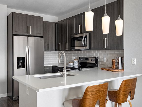 Discover Denver in a high-energy community with designer details. Our artful Downtown Denver apartments are a masterclass in modern style. Gorgeous grey-wash cabinetry, quartz countertops, tile backsplash, and wood-style flooring welcome you home after your Downtown-exploring. Our entire aesthetic is a fusion of brains and beauty. Intelligent features are found both inside your inspiring home and throughout the spectacular shared spaces, like keyless entry, smart thermostats, community-wide WiFi, and other built-in benefits that make for smart living. Whether you prefer to stay in and lay low or take in the tastes and sights of the Mile-High City, 20th Street Station is your stop for an incomparable Denver lifestyle.