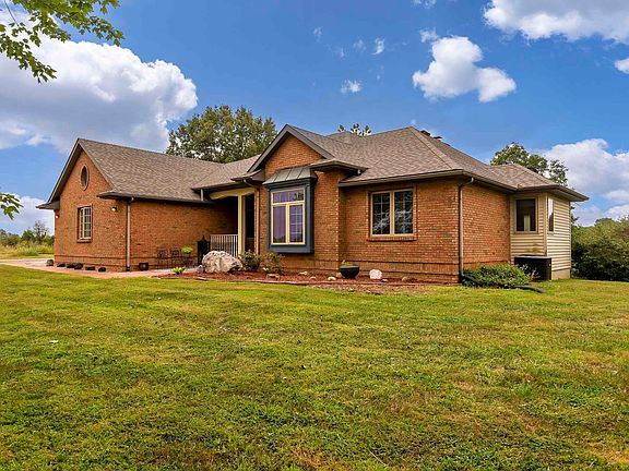 Discover the perfect blend of style and comfort in this beautiful 4-bedroom, 4-bathroom ranch-style home, nestled on 8.8 acres in Southern Illinois. With 3,507 sq ft of living space, this home is designed to accommodate all your needs. The spacious interior includes an inviting upstairs living room with a cozy gas fireplace, while the walkout basement offers additional living space with a charming wood-burning fireplace, ideal for gatherings during colder months. A new roof was put on in Spring of 2024. Outdoor living is a delight with a large concrete patio at the back of the house, perfect for entertaining or simply enjoying the serene surroundings. The property also includes an attached 2-car garage and a detached 1-car garage, providing ample space for vehicles, storage, or a workshop. The property also offers a small pond, enhancing the natural beauty and offering a peaceful spot to relax. Located in a serene setting yet conveniently close to Cape Girardeau, MO, and Kentucky, this home offers the best of both worlds. Whether you’re looking for a spacious family home or a quiet retreat, this property is sure to impress. Schedule your showing today and experience the beauty and comfort of this Southern Illinois gem!