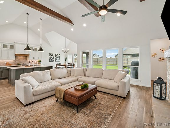 NEW IMPROVED PRICE GREAT DEAL!!-To get in this area at this price point is a miracle!!Newer construction home in the desirable Torrey Lakes Addition. Barely lived in. A block down from this home you have easy access to a fountain lake with walking track, a neighborhood pool along with a playground. Home is Only 2 years old and well built with open living concept large stone fireplace. Livingroom & Dining room with lots of windows. Oversized closet in primary, upgrades include usb charging outlets, soft close drawers, insulated vinyl windows, deep breakfast bar area, pocket for coffee bar, media built-in wiring, stand alone soaking tub, interior beams and high ceilings, wood like tile, quiet garage door openers with exterior keypad, full privacy fence, & 3 car garage with storage and room for additional fridge. On dead end street so low traffic activity makes this home and area easy to enjoy. Short distance to downtown Tulsa, downtown Bixby &/or South Tulsa and Tulsa hills. "Let's Go shopping"