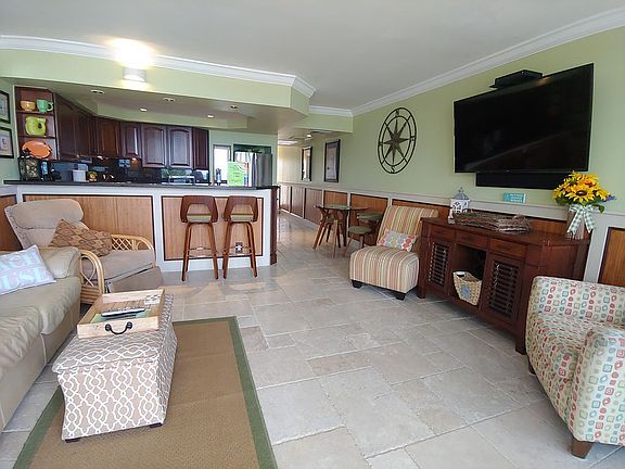 Luxury condo suite at the beach has wonderful views of the ocean and fishing pier. This top (4th) floor suite layout provides privacy within to the bedroom and master bathroom. The living room and kitchen have an open floor plan with a counter bar. The floor to ceiling sliding glass doors of the living room open up to the new large balcony which has an unobstructed glass railings with La-Z-Boy recliners. Linens are provided for the two double beds in the bedroom as well as the pull out couch in the living room. Towels are provided for each of the two full bathrooms as well as the beach. A pass is provided for convenience to enjoy a two piece set of cushioned lounge chairs and umbrella on the beach. Additional features include marble tile throughout, heated pool, secure parking, picnic area, Central Air Conditioning, Wi-Fi, Cable Channels, and 2 HD TV's, for additional information or clarification on amenities please contact the manager. Deerfield Beach *One Mile Brick Paved Ocean Walk *Ocean Front Restaurants *Outdoor Showers *Green Space Lawn Lined with Palm Trees *World Class Fishing Pier Deerfield Beach is very walkable where you can enjoy the one mile boardwalk on the beach side of the building. Walking a half block north begins the dining and restaurant options walking south you can continue to enjoy the breeze and nature of the ocean. Deerfield Beach has done an extraordinary job showcasing this jewel of a beach. Brick pavers line the ocean walk for a mile stretch. The green space of lawn between the ocean walk and the beach is truly unique lined with palm trees it provides a perfect space to relax on the lawn in the shade and enjoy the beach. Outdoor showers are provided to rinse off after a dip in the ocean or a walk along the beach. Only a short one minute walk along the beach brings you to the new pier and facilities with world class fishing. Please visit your favorite mapping or review website to check the area out as well as the dinning and activities in the immediate area. The outdoor activities in this area are endless a couple of examples include: Snorkeling Scuba Diving Boating Fishing Kiteboarding Surfing Wakeboarding (Check out the cable wake-board park at Quiet Waters) Golfing Walking Biking Etc... CANCELLATIONS Off Season, Monthly, Weekly, short term leases. Subject to applicable tax. Call or go to 404Beach.com for availability.