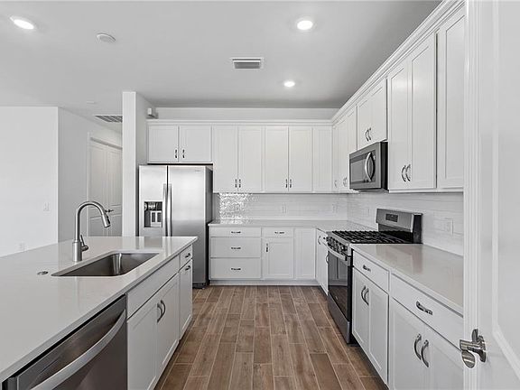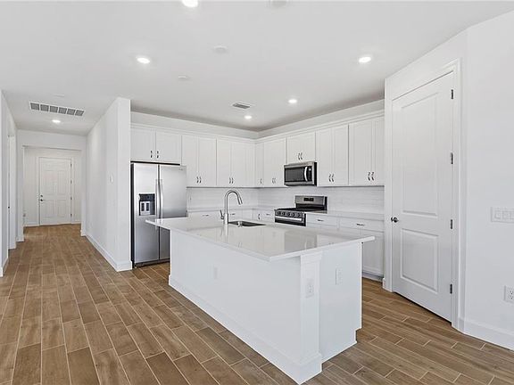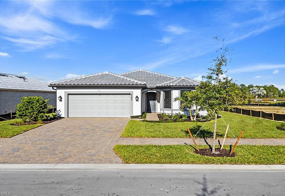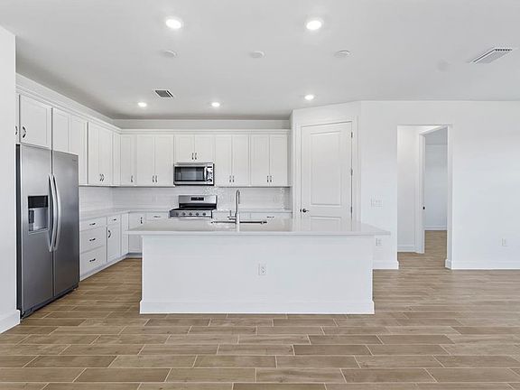This Mystique floorplan features 3 bedrooms, 2 bathrooms, and a versatile den, offering a thoughtfully designed layout for comfortable living. The home includes a 4' garage extension for added storage, white cabinetry with quartz countertops, and 6" x 24" tile flooring throughout. Additional upgrades include pool/spa pre-wire, 8' interior doors, 5" baseboards, and an epoxy-finished garage floor. With a durable tile roof and impact windows, this home combines style, functionality, and peace of mind. Neighborhood features include 15,000 sq. ft. grand clubhouse with large community room for events, catering kitchen, state-of-the-art fitness center, exercise studio, 8 pickleball courts, 2 tennis courts, dog park, playground, firepit lounge, dog park, resort style pool, lap lanes, heated spa, full-service restaurant bar & grill, food truck drive-up, 18-hole public golf-course next door & more!