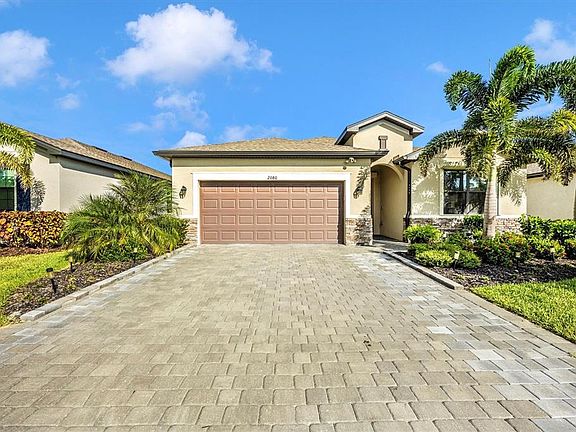 This stunning home truly shows like a model and is perfectly situated on one of the premier lots in the neighborhood—backing to the widest part of the lake for exceptional views and privacy. Inside, a thoughtfully designed open floor plan welcomes you, with guest suites toward the front and a serene primary retreat tucked in the back. While just three years young, this home has been extensively enhanced with features the builder never offered. A leaded glass front door and upgraded porch lighting set the tone. The reimagined kitchen showcases striking quartz countertops, white shaker cabinetry with soft-close drawers, decorative glass doors on the butler’s pantry, a gorgeous stone backsplash, and all-new stainless steel appliances—including an on-demand hot water system beneath the sink. The family room impresses with a custom stacked-stone electric fireplace, built-in shelving, and a remote-controlled shade for the sliding doors. Both guest baths have been updated with sleek standing showers and gliding glass doors, while the primary suite boasts lighted mirrors, a custom walk-in shower, and a relaxing garden tub. Crown molding graces the entire home, and every builder-grade light fixture has been replaced with stylish, designer-selected lighting. Exterior upgrades include a widened driveway, full gutters, Storm Smart shutters, and a remote-controlled lanai shade—perfect for extra storm protection or everyday comfort. The saltwater pool and spa are enhanced by a tranquil custom water fountain, creating the ultimate backyard oasis. Enjoy low-maintenance living in this gated community, where the HOA covers lawn care, trimming, cable, internet, and trash service. Residents also enjoy an active social calendar, fitness center, pickleball courts, and more! Ideally located close to shopping, dining, Englewood Beach, and the lively Dearborn Street nightlife—this home offers the best of Florida living!