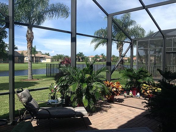 Lake View Home 2 bedroom 2 full baths with den (3rd bed room) Beautiful Isabel model loaded with upgrades. Newly painted with Storm shutters. Tile on the diagonal in all baths, living, dining, kitchen, hallways. Laminate in master bedroom and den. Granite in kitchen and all baths. Upgraded kitchen with pantry and draws recessed lighting, + extended cabinetry. Beautiful large screened patio over looking the lake.
