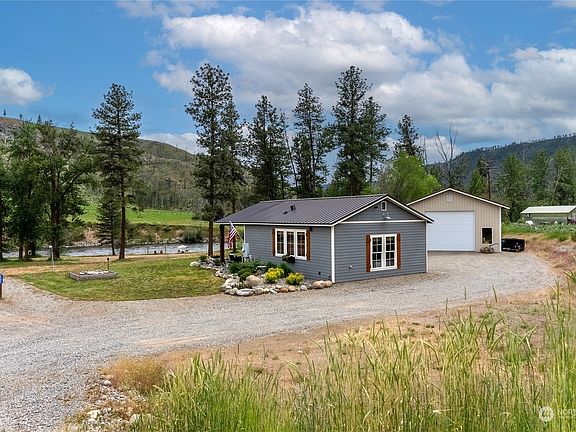 Look no further, the riverfront retreat you’ve been waiting for is finally here. Elegant and freshly finished with modern farmhouse cottage flare. Perched on 2.9 acres along the Methow River, nicely appointed 800 sq. ft. home, 1 BD, 3/4 bath with large insulated shop. Crips & sophisticated finishes; white shiplap & pine walls, barn doors, and white subway tile backsplash. Entertain & relax to your hearts content. Exit through sliding doors to a stunning covered patio complete with grilling station, TV, surround sound, table and firepit. Bring your friends and family, 2 RV hookups. Walk right to the 900 ft of sandy riverfront to play. Get ready to relish, this is it! Comes fully furnished.