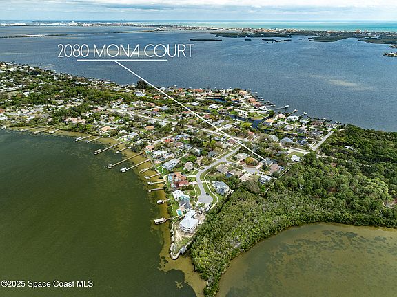 Situated in a quiet cul-de-sac off Newfound Harbor Drive, this captivating home combines privacy with waterfront access, featuring a new boat dock perfect for exploring the scenic local waterways. The roof, installed just three years ago, crowns a home brimming with potential and ready for your personalized updates. Fully handicap accessible, this property ensures comfort and ease for everyone. Beyond the front door, discover a massive pool within a screened area, ideal for year-round enjoyment and entertaining. The pool area promises a private retreat for relaxation or lively gatherings. Located on the Space Coast, known for its pristine beaches and vibrant outdoor lifestyle, you have immediate access to premier shopping, dining, and entertainment. The area is a haven for water sports, fishing, and boating, making it highly desirable for those seeking adventure and tranquility alike. Whether as a permanent residence or a holiday home, 2080 Mona Court offers a unique opportunity!