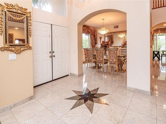 Welcome to this spacious and elegant 3,270 sq. ft. 4-bedroom 3-bathroom home located on a premium corner lot in the highly sought-after Orangecrest community. From the moment you step into the grand entryway, you'll be impressed by the granite tile flooring with designer inlay under its elegant chandelier, soaring high ceilings and spiral staircase leading to the upper level. Conveniently located to the right is the formal living room, and to the left the dining room that offers a perfect setting for gatherings and entertaining. The open-concept kitchen boasts granite countertops, a center island, walk-in pantry, and recessed lighting—flowing seamlessly into the inviting family room complete with a cozy fireplace and backyard views. With four generous bedrooms and three full bathrooms, this home offers both comfort and functionality. A convenient downstairs bedroom and full bathroom is perfect for guests or a home office. Upstairs, the master suite is a true retreat featuring a spacious master bathroom with dual sinks, separate soaking tub and shower as well as a large walk-in closet. A versatile loft game room and three roomy additional bedrooms and full bathroom complete the upper level. Enjoy the outdoors in your beautifully landscaped backyard, featuring a large AlumaWood patio cover with built-in power solar shades—ideal for relaxing or entertaining year-round. Multiple fruit trees surround the yard and add charm and utility to the space. A very desirable location close to parks, top-rated schools, and shopping. Don’t miss the opportunity to make this exceptional Orangecrest home yours!