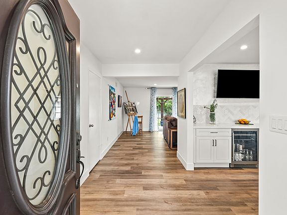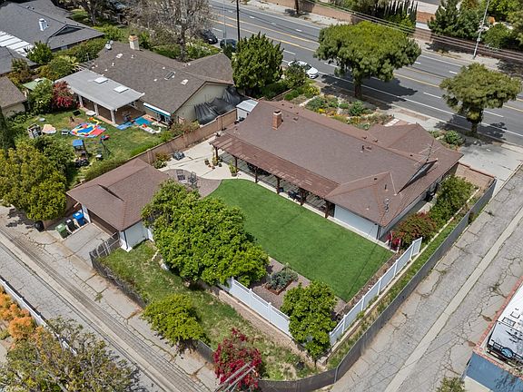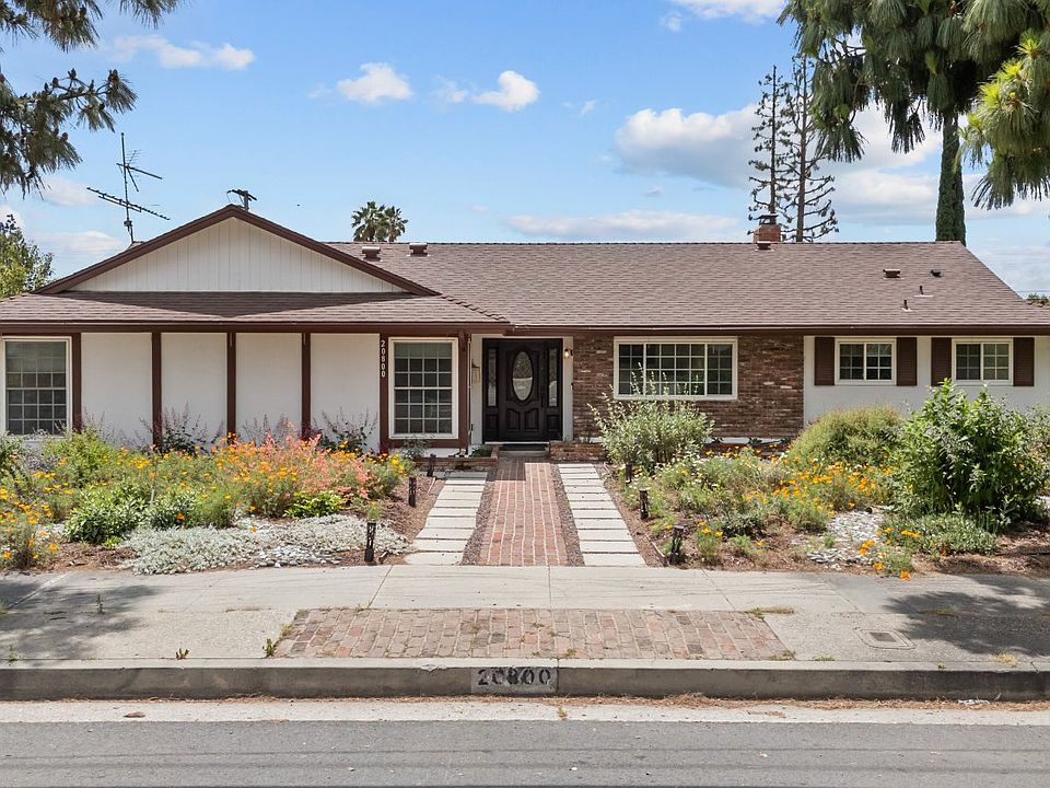 Nestled in a coveted Chatsworth neighborhood, this single-story gem exudes beauty and charm. Meticulously maintained, this home boasts a prime location and impressive curb appeal. With $300k in upgrades, including new plumbing and HVAC, it offers modern comfort and style. Featuring 4 bedrooms and 2.5 bathrooms, this residence showcases new vinyl flooring, recessed lighting, and abundant storage. Entertain effortlessly in the elegant formal living room with a cozy gas fireplace and double doors framing the picturesque backyard view. A formal dining room and a kitchen bar area provide perfect settings for meals. The kitchen is a chef's dream, boasting pristine quartz countertops, top-of-the-line appliances, and a stylish backsplash. The bedrooms are generously sized, with the primary bedroom offering an ensuite bathroom complete with a soaking tub and separate shower. Both bathrooms feature modern fixtures, double sink vanities, and ample storage. A detached 2-car garage offers potential for an ADU conversion, and there's additional space for RV/boat parking at the rear of the property which can also be the site for future ADU's. The front yard welcomes with a charming pathway and vibrant flowers, while the expansive backyard features a lush, hassle-free lawn, a pergola-covered patio, and plenty of privacy for outdoor enjoyment.