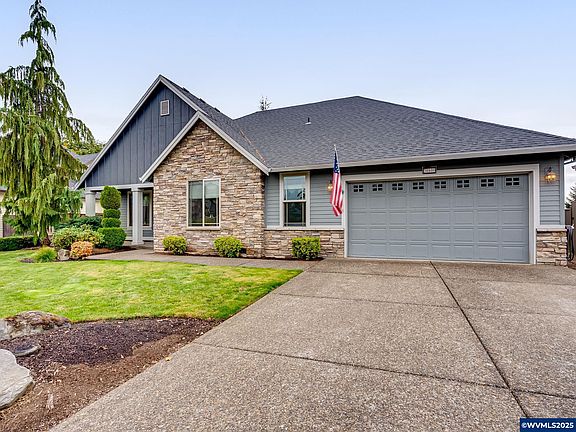 This beautifully maintained single-level home combines modern comfort with small-town charm. Featuring a hard-to=find three car garage, vaulted ceilings, & a thoughtfully designed floor plan, it offers both style & function in one perfect package. Step inside to a bright, open living space that flows effortlessly into a recently updated kitchen - complete w/white cabinetry, stunning quartz countertops, & plenty of prep space for everyday cooking or entertaining guests. A dedicated office/flex space. The primary suite feels like a true escape, featuring a large walk-in closet & a private bath w/modern finishes. Outside, enjoy a covered deck overlooking the beautifully landscaped backyard - perfect for relaxing, barbecuing, or hosting friends year-round. Surrounded by picturesque vineyards, thriving farms, & historic charm, this home sits in an unbeatable location. Explore nearby wineries, farm-to-table restaurants, & scenic outdoor adventures just minutes away. Located in the sought-after North Marion School District, it offers the best of both worlds - peaceful small-town living w/convenient access to I-5 & neighboring cities. Basically, it's the home that checks every box on the wish list - & then some.