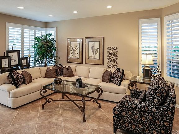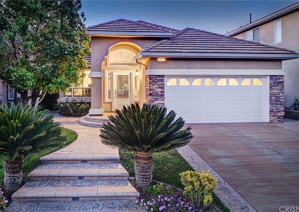 Price reduced! Fabulous, seldom on the market, turnkey, professionally decorated SINGLE STORY in Guard Gated Sorrento features 3 bedrooms and 2 bathrooms. Enter this meticulous home to beautiful tile stone flooring, high ceilings and recessed lighting. Plantation shutters. Dining Room. Beautiful custom, extended eat-in island kitchen with granite counters, stainless steel appliances & plenty of cabinet space. This open concept floor plan features a spacious family room with fireplace and stunning built-in entertainment center which is perfect for your TV and sound system. Built in speakers in Living Room & Family Room. Spacious master bedroom with en-suite master bath boasts a spa tub, double sinks and glass enclosed shower. Two secondary bedrooms with newer carpet: one with a walk-in closet and the other with one-of-a-kind custom built-ins featuring bookcases, a "treaty style desk" and mirrored wardrobe closet doors. Security system. The tranquil low maintenance backyard has a built-in barbecue and step-up entertainment area perfect for your romantic dinners. The highly sought after guard gated community amenities include 2 pools, spas, children's play areas, built-in barbecue and picnic areas. This home is close to shopping, great schools including the highly demanded Porter Ranch K-8 Community School, the new Vineyards Shopping Center with Whole Foods, theaters, shops and restaurants. Don't miss this truly spectacular home!