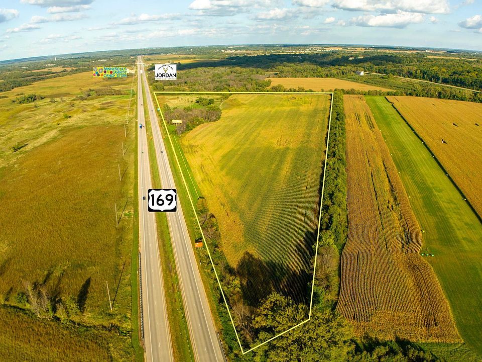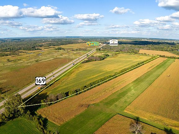 46+ acres south of Jordan on the Northbound land of Hwy 169. Approx 33 acres of tillable land. Former homesite has 2 wells that are NOT in use.