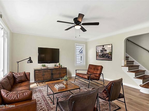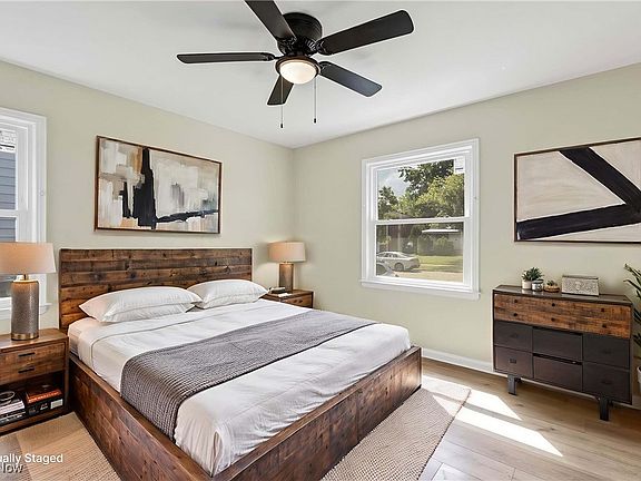 Prepare to be moved! Welcome to 20801 Morris Avenue, Euclid, OH 44123—an inviting Cape Cod home that offers tasteful improvements while preserving its original charm. From the moment you arrive, you'll notice the newer concrete driveway, newly installed roof and freshly painted exterior, setting the tone for the thoughtful updates within the home. Step inside to a bright and open living room with newer flooring that extends throughout the entire first and second floor, paired with a freshly painted interior that creates a clean, inviting atmosphere. The newly updated kitchen showcases sleek modern cabinets, generous counterspace, and a cozy breakfast nook—blending style and functionality for everyday living and effortless entertaining. Off the main hallway, two bedrooms are separated by a newly renovated full-size bathroom, providing comfort and privacy for family or guests. Upstairs, you'll find the spacious primary suite complete with a large bathroom featuring a walk-in shower and spacious vanities. Downstairs, you'll find a newly updated, partially finished basement—ideal for a family room, home gym, or office—with plenty of potential for customization. Step outside to enjoy a clean, partially fenced backyard that offers a blank canvas for outdoor living. Whether you envision creating a relaxing patio space, setting up a play area, starting a garden, or entertaining friends and family, this backyard has the potential to become your private outdoor retreat. Other recent updates include the AC condenser installed 08/2025. The detached one-car garage provides parking along with additional storage space. Conveniently located just a short drive from I-90, the shores of Lake Erie, and close to Euclid Memorial Park. Affordable, move-in ready, and full of potential—this Euclid charmer is the perfect step into homeownership.