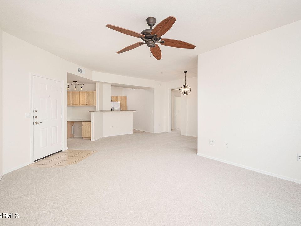 Discover comfort and sophistication in this freshly painted, newly carpeted 2-bedroom, 2-bath condo in sought-after DC Ranch. The open floor plan is designed for modern living, featuring a convenient touchdown desk for remote work, a spacious laundry room with ample bike and golf club storage, plus a large utility closet, and a serene private balcony with lush views. Just 1/4 mile from Market Street's shops, grocery store, and restaurants, this home offers premier access to DC Ranch's luxury amenities—state-of-the-art clubhouse, heated pools and spas, tennis, pickleball, gym, and miles of scenic trails. Includes two designated parking spaces, one covered and one uncovered (469 & 602). Embrace the DC Ranch lifestyle.