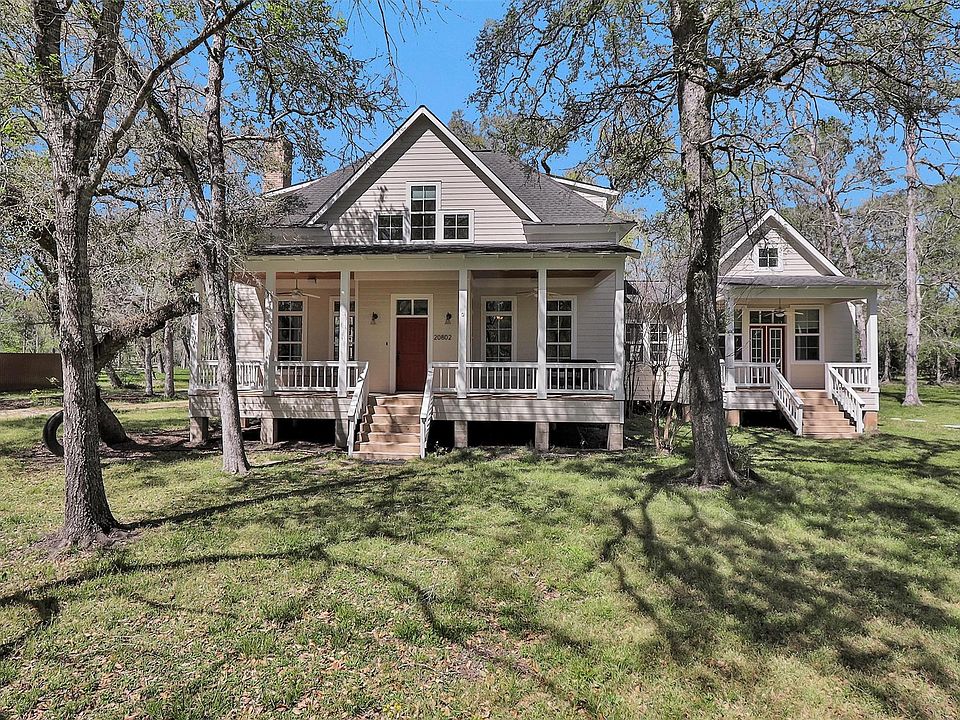 This stunning home was honored as the Coastal Living Cottage of the Year in 2002 by Southern Magazine. Featuring elegant coffered ceilings, a beautifully maintained landscape & expansive windows, it offers breathtaking views from every angle. The spacious living room includes a granite fireplace & custom built-ins. The island kitchen is equipped with stainless steel appliances, custom cabinetry & a charming copper farmhouse sink. Upstairs, you'll find a built-in office/workspace, 2 bedrooms w/ walk-in closets, private vanities, and a shared Jack & Jill bathroom. The highlight of the home is the secluded primary suite on the main floor complete w/ a luxurious oversized shower, a vintage clawfoot tub, dual vanities & custom walk-in closets. An additional loft-style guest house with a ¾ bath is ideal for long-term stays. Enjoy outdoor living on the screened porch with a wood-burning fireplace. The three-car garage includes a workshop with A/C and a slab floor. Truly a one of a kind home