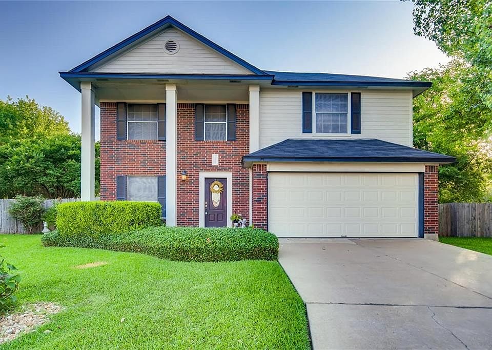 Updated with gorgeous Quartz counters, gray cabinets, interior neutral paint, wood flooring, and luxury vinyl plank in baths and utility room. This stately home sits in the back of a quiet culdesac with mature landscaping and shaded backyard. Upstairs is a HUGE master bedroom with 2 separate closets and high ceilings. A large living and dining space in the front, and a cozy den with fireplace in the back of the home. Great schools, Stonehill shopping/dining, and community park/pool nearby.