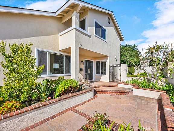 Less than two miles from the ocean, this stunning 5-bedroom, 2.5-bath Seawind home is perfectly situated in a quiet interior location just steps from the neighborhood park, within a highly sought-after community served by top-ranked schools (Hawes, Sowers, Edison). The entire home has been exquisitely upgraded, including all new electrical, flooring, windows, paint, and more! Model-perfect throughout, this remodeled home showcases marble flooring in the formal living and dining rooms, newer beach-style wood vinyl flooring in all other rooms, LED recessed lighting in every room, crown molding, dual-pane windows, Hunter Douglas silhouette blinds, raised panel interior and closet doors, and beautifully remodeled kitchen and baths. Impeccable curb appeal is highlighted by manicured landscaping and elegant flagstone and brick hardscape. Double beveled-glass entry doors open to a formal foyer and dramatic staircase with sleek horizontal steel railing for a clean, contemporary look. The spacious formal living room impresses with its soaring two-story ceiling and high transom window flooding the space with natural light. The chef’s kitchen is a dream, featuring granite countertops, a center island with wrap-around bar seating, custom cabinetry with pull-outs, stainless sinks with backyard views, and stainless steel appliances including a 5-burner gas range, microwave, dishwasher, and refrigerator. Open to the kitchen, the welcoming family room offers a marble fireplace with mantel and a wall of sliding glass doors that lead to a backyard oasis complete with covered patio, flagstone and brick decking, built-in barbecue center, lush wrap-around lawn, and stucco wall fencing—ideal for enjoying ocean breezes, relaxing evenings, or sunset entertaining. All five bedrooms are located upstairs, including a luxurious primary suite with his-and-hers cedar-lined, organized closets, a built-in entertainment center, and an ensuite bath with a designer floor-to-ceiling tiled walk-in shower. All three bathrooms feature granite countertops and upgraded fixtures, and the hall bath offers a tub/shower combo. One bedroom includes a private balcony via sliding doors, and another offers a convenient desk niche. Additional highlights include an inside laundry room, ample storage throughout, and a finished direct-access garage with built-in cabinetry. This remarkable home offers the perfect blend of coastal charm, modern upgrades, and elegant living.