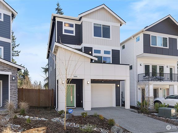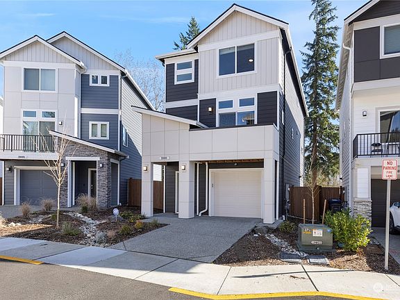 First resale in the coveted Easton Heights community of Bothell, this modern masterpiece by Pacific Ridge Homes awaits its next owner. 4 beds, 2 en suite baths, powder off main, additional full bath on top floor, & 2222 sqft of open-concept living space. Embrace smart home features, quartz countertops, & stainless steel appliances, harmonizing practicality with luxury. The lower level boasts a private bedroom, while the third floor hosts three more, including a primary retreat. Enjoy sun filled mornings on the outdoor balcony or retreat to the fenced backyard oasis. Comes with 1 car EV charging garage + additional parking in front. Quick access to Thrashers Corner, Canyon Park, & Alderwood Mall, & highly-rated Northshore School District.