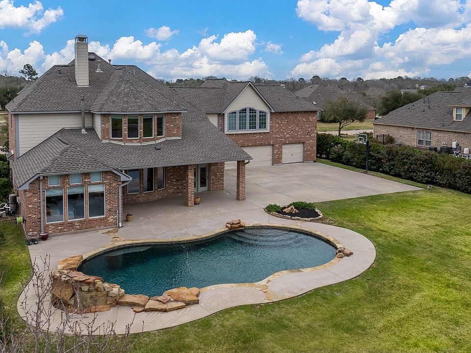 WATER FRONT! Roof - 2022, Interior paint - 2025, AC's about 8 years old, Water heaters 2025. Situated on a half-acre lot, this expansive residence blends luxury, comfort, and tranquility. With almost 6,000 sq.ft., 5 beds, 4.5 baths, & a 3-car garage, this home is perfect for family living & entertaining. A grand foyer flows into the spacious living areas. The gourmet kitchen features modern appliances, ample cabinetry, & a large center island. The living room’s cozy fireplace and oversized windows showcase stunning backyard views. The primary suite is a retreat with a sitting area, backyard access, and a spa-like ensuite with dual vanities, a soaking tub, a separate shower, and a walk-in closet. 4 well-appointed bedrooms provide comfort, while the upstairs game room, media room, & secondary living area offer space to unwind. Step outside to a backyard oasis designed for relaxation and entertaining. With no rear neighbors, this expansive lot offers privacy & room to enjoy the outdoors.