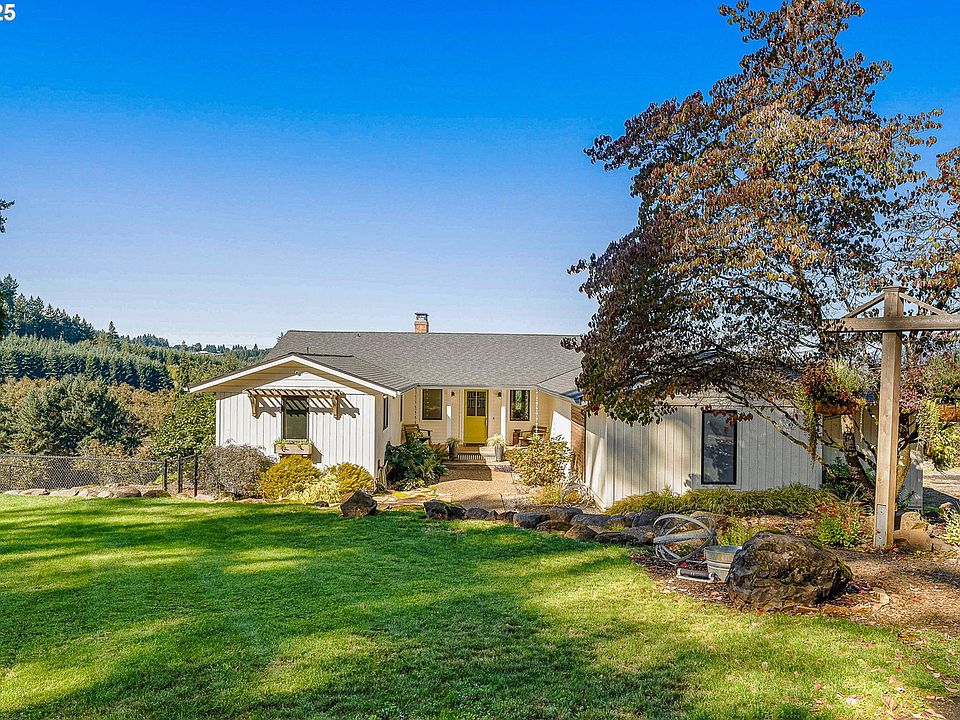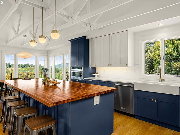 Nestled on 10 peaceful acres in the heart of the Dundee Hills AVA, this exceptional property offers a rare blend of modern living, agricultural opportunity, and panoramic wine country views. Eight acres are currently planted with producing hazelnuts, yet the highly sought-after Jory soil is equally ideal for cultivating premium vineyards, making it a compelling option for wine enthusiasts, boutique growers, or hobby farmers. At the center of the estate is a fully renovated 4-bedroom, 3-bath home, thoughtfully redesigned with contemporary finishes and timeless style. Expansive windows flood the open-concept kitchen, dining, and family room with natural light while framing stunning vistas of the valley and surrounding vineyards. A newer detached ADU adds versatility, featuring a spacious main-level shop with half bath and carport, plus a private living space above - perfect for multi-generational living. The outdoor setting is equally captivating, offering sweeping views that embody the essence of Oregon wine country. Every detail of the home reflects a balance of comfort and sophistication, from the chef’s kitchen and spa-inspired bathrooms to the generous primary suite. Whether you're seeking a working farm, a vineyard site, or a private retreat, this rare offering delivers on every front, inviting you to experience the unmatched beauty and lifestyle of the Dundee Hills.