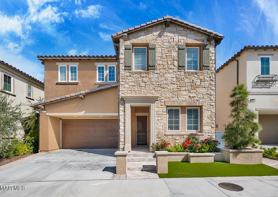 Stunning *Newly Built in 2019* 5 bed/4 bath, Montage Tuscan home situated inside of the coveted guard-gated community, Peak at the Canyons at Porter Ranch. This gorgeous ~2,700 sq ft home offers a spacious layout, convenient shopping, security, award-winning Blue Ribbon PRCS K-8 school, community clubhouse and largest recreation/pool area of all the Toll Brothers communities - complete with Cabanas, large screen TVs, outdoor BBQs/cooking area, Splash Pad - *The ultimate in resort-style living*. As you enter the front door, you are greeted by abundance of open space and natural light: 20' Foyer, Large bay windows with custom-trim, 10' ceilings and automated shades **expansive sliding glass wall/door leads to covered patio and cozy grassy backyard with Malibu lights and beautiful roses complete with outdoor kitchen that includes a built in BBQ w/rotisserie, stove, sink & storage** Open kitchen layout with grand island, stainless steel appliance, and tons of cabinets for storage; Surrounded by family room, dining room and living room with crown moulding; The gourmet kitchen has a *built-in smart Sub-Zero refrigerator* and is well suited for entertaining families and friends - upgraded tile flooring throughout the ground floor; One bedroom w/ walk-in closet and full bath are perfectly placed for office/study or visiting family/friends. Upstairs hosts 4 bedrooms - central loft/sitting area, and laundry room with Samsung washer and smart dryer, with upgraded carpet, recessed LED lighting and shutters/custom window treatments throughout the entire 2nd floor. Smart Ecobee Thermostat, installed security system (pay for service) & smart oven. Impressive primary suite with coffered ceiling, crown moulding & has an amazing upgraded en-suite bathroom with dual-vanities, separated with a stylish barn door. One upstairs bedroom includes a private ensuite bathroom. Home includes completely purchased Solar installation. Two-car garage has installed over-head storage. This home is move-in ready. Close proximity to 2 shopping plazas down the hill - Porter Ranch Town Center and The Vineyards at Porter Ranch, which are homes to many well-known shops and fine dining restaurants like Whole Foods, Walmart, Best Buy, AMC Theaters, Guss BBQ, Lure Fish House, In-N-Out Burgers, and Starbucks. HURRY! This marvelous home in the highly desirable Porter Ranch neighborhood won't last long!!