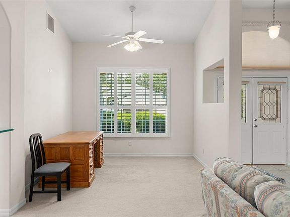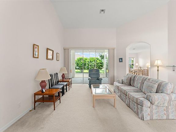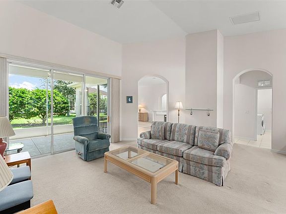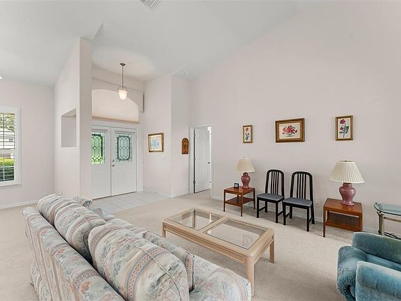 **This property qualifies for a closing cost credit up to $4,800 through the Seller’s preferred lender.** Welcome to 20806 Queen Alexandra Drive – A Place to Call Home. Nestled in a peaceful neighborhood in Leesburg, this nearly 2,000 sq ft single-family home offers comfort, charm, and thoughtful design throughout. With 3 spacious bedrooms, 2 bathrooms, and a 2-car garage, this home is perfectly suited for those seeking both space and serenity. A beautifully manicured front yard and a screened-in front entrance warmly greet you as you arrive. Through the elegant double doors, you’re welcomed into a bright and airy living room with a stunning view straight out to the screened-in patio, framed by a 3-panel sliding glass door—perfect for bringing the outdoors in. Just to the right, a cozy nook currently used as an office provides a quiet retreat for work or hobbies. To the left, you'll find the generously sized primary bedroom in this smart split-bedroom layout. The primary suite features plush carpeting, private access to the patio, 2 walk-in closets, and a spacious ensuite bath complete with dual sink vanity, extra counter and cabinet space, and a walk-in shower with safety bars for peace of mind. The heart of the home lies just beyond the living room, where arched passthroughs provide a charming peek into the kitchen. With crisp white cabinetry, stainless steel appliances, a center island, and a cheerful breakfast nook next to its own sliding glass door to the patio, the kitchen is both stylish and functional. Adjacent to the kitchen is the formal dining area—ideal for gathering with loved ones. Tucked away on the opposite side of the home are the two guest bedrooms, both with built-in closets and ceiling fans, and a well-appointed full bathroom between them, featuring a glass-enclosed tub/shower combo. This home has been carefully maintained and thoughtfully upgraded with quality in mind. The roof was replaced in 2022, along with the addition of an attic heat shield for extra insulation and foam injection into the block construction, helping keep energy costs low year-round. The home is equipped with a built-in pest defense system that runs through the home—giving you added protection and peace of mind. Step outside to the tranquil screened-in patio, your own private oasis with lush green hedges that offer both beauty and privacy. For those who love outdoor living, there’s also an additional paved area beyond the enclosure, perfect for enjoying Florida's sunshine. A laundry room with overhead shelving, a split floor plan for added privacy, and thoughtful finishes throughout make this home not just a place to live—but a place to love. Come discover the lifestyle waiting for you at 20806 Queen Alexandra Drive. You’ll feel right at home the moment you step through the door.