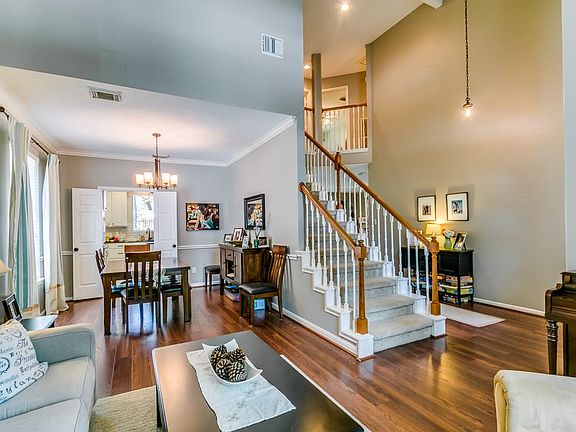 You will love the high ceilings in this beautifully updated home nestled in the trees of this quite cul-de-sac. Laminate wood flooring flows throughout the downstairs living space into a lovely tiled kitchen with granite counter tops and marble back-splash.Outside patio and back yard is a great space for entertaining. Hop on the greenbelts for a walk to the neighborhood pool or lakeside park. Excellent schools!Refrigerator, washer and dryer will be conveyed with acceptable offer.