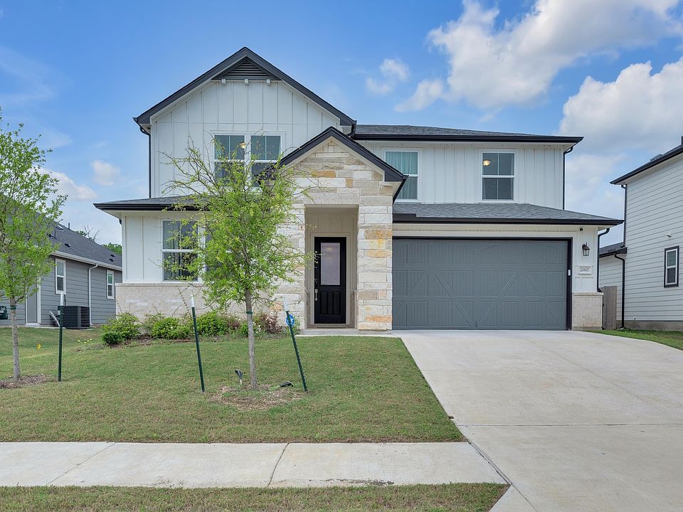 Don't miss this gorgeous home in Manor! This gem features an open layout with stainless steel appliances in the kitchen, island and two additional counters with tons of storage, refrigerator, washer, & dryer included! Primary bedroom has tons of room and is complete with an ensuite bath that features dual vanity sinks, standing shower, and large walk in closet! Rear patio in the backyard is covered and leads to a spacious yard, perfect to relax or entertain! Community amenities include:: Pool, clubhouse, playground, soccer field, dog park, and pond. This one will lease quickly! Apply TODAY!